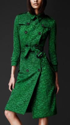 I first saw a link to this amazing Burberry "Kickback Lace Trench Coat" on Erica B's - D.I.Y. Style. And, I totally love, love, love this jacket. It's way beyond my basic skills right now, but this amazing jacket gives me yet another reason to continue learning and striving with my sewing endeavors.